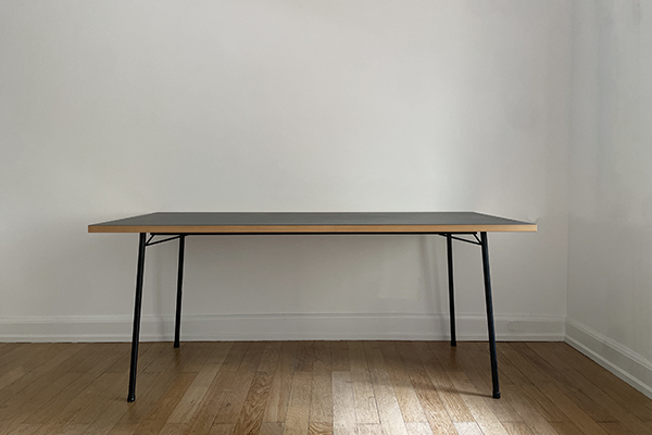 Unknown desk / dining table from the 1970´s. Table top has been renewed with linoleum and cherry wood. Measures 180 cm wide x 90 cm deep x 72 cm high. Good condition.